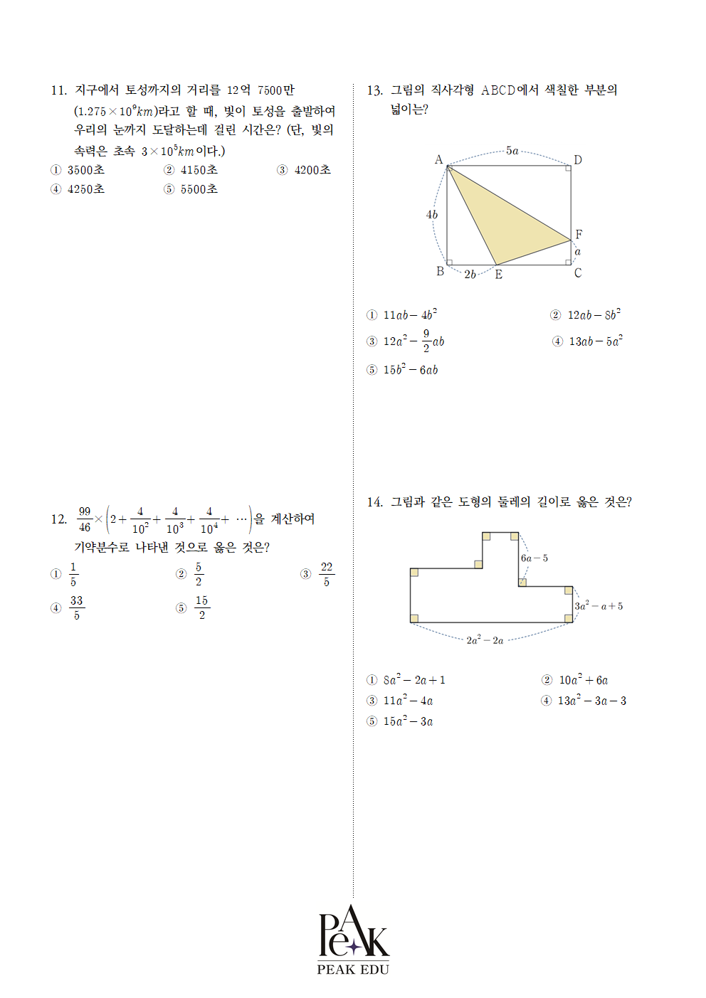 문항수 : 18문제 (선택형 14, 서술형 4)