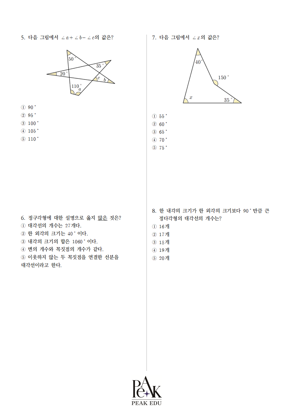 범위 : 기본도형 (작도와 합동) ~ 입체도형